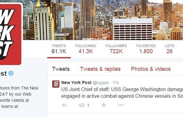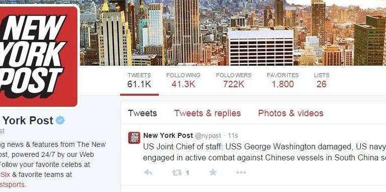 "Nuestra cuenta en Twitter ha sido pirateada", dijo el periódico en un mensaje en su cuenta de la sección de Negocios @NYPostBiz, que poco después también fue aparentemente "hackeada" y comenzó a publicar algunas de las supuestas noticias que habían aparecido en @nypost.