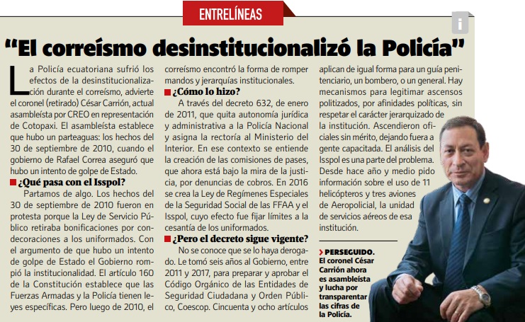 El manejo de las inversiones de la seguridad social de la Policía bajo investigación. La Superintendencia de Bancos observó cómo se invirtieron algunos recursos del Isspol, a través de operaciones de riesgo con empresas priva das. Hay preocupantes r evelaciones