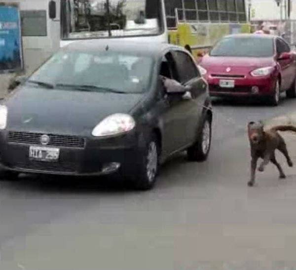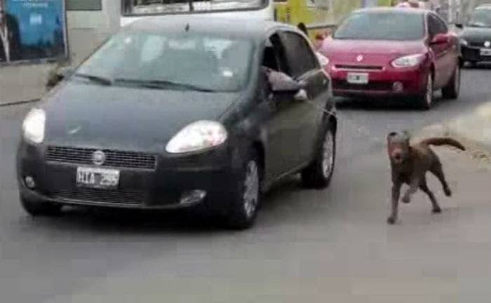 Las críticas fueron contra una mujer sacó a pasear a su perro (de raza Pitbull) mientras ella manejaba su auto y el animal caminaba atado a una correa que salía por la ventanilla del conductor.