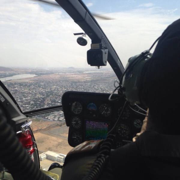 El recorrido comienza desde la Terminal de Aeropolicial en uno de los dos helicópteros que vigila la urbe. Su piloto, Daniel Cedeño, dijo que ha sido utilizado en operativos especiales: “Operativos de antinarcóticos, operativos con personal de inteligencia, operativos de la fuga de la Penitenciaría...”.