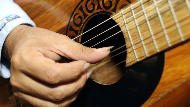 Su pasión por la música tuvo su impulso cuando uno de sus tíos le regaló su primer requinto. Desde ese momento, no se separa de las cuerdas ni en finados. “Nos reunimos en el cementerio y llevamos 20 a 30 guitarras para tocar a los familiares fallecidos. Les tocamos canciones que les gustaban a ellos: ‘Faltándome tú’, ‘Rosario de besos’.