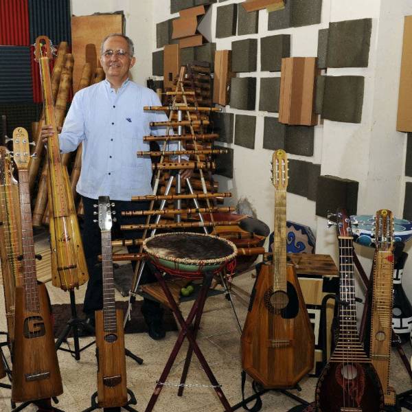 “Yo soy la tercera generación de creadores de instrumentos de cuerda de la familia Ganchozo”, cuentaGanchozo, de 52 años. Su abuelo Sabulón, quien vivía en Calceta (Manabí), construía bandolines, bandolas y vihuelas. Las siguientes generaciones se enfocaron en las guitarras y requintos. Sin embargo, él siguió un camino paralelo y combinó las habilidades heredadas de su familia con sus investigaciones sobre la música de la Costa. De ese interés surgió su idea de construir instrumentos con caña guadua y barro. Materiales poco comunes para un lutier.