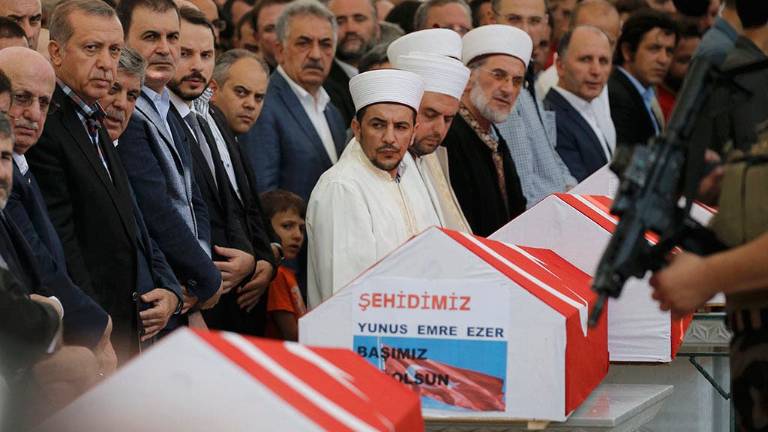 "Esto no es un operativo de 12 horas. Esta semana es muy importante. No abandonen las plazas, no se relajen", dijo Erdogan después del entierro de varias víctimas del intento golpista.
