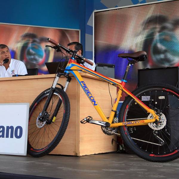 Quito.- El presidente de Ecuador, Rafael Correa, inauguró este sábado la subasta pública de una bicicleta que le fuera obsequiada a principios de año por el presidente chino, Xi Jinping, y cuya puja empezó con un valor base de 1.200 dólares.