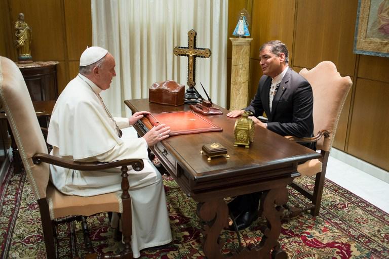 Sobre la eventual invitación del Vaticano, Correa dijo que "parece que el papa Francisco está preparando una nueva encíclica sobre desarrollo" y que es posible que lo invite, como ya lo hiciera el año pasado cuando el Pontífice elaboraba otra encíclica sobre medioambiente.