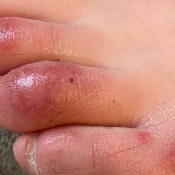 Los dermatólogos sospechan que, a través de los dedos de los pies es factible indicar si una persona padece o no de coronavirus. Principalmente en el caso de los pacientes asintomáticos. Esto se debe a un creciente reporte de casos de dedos en los pies con morados, según los pacientes es muy doloroso y que no se debe a golpes. El dolor es tan intenso que es muy sensible al tacto e incluso produce sensaciones de quemadura.