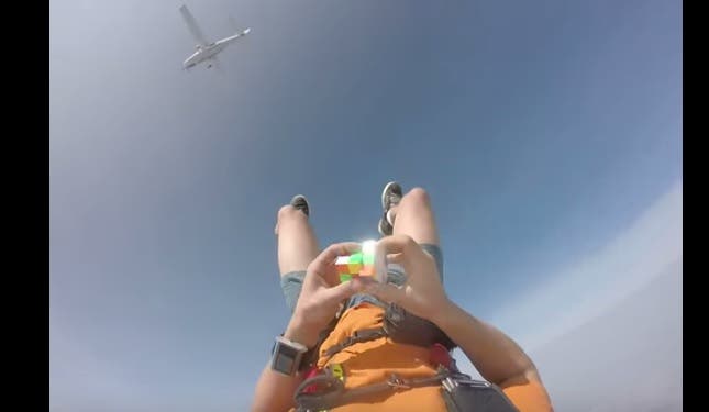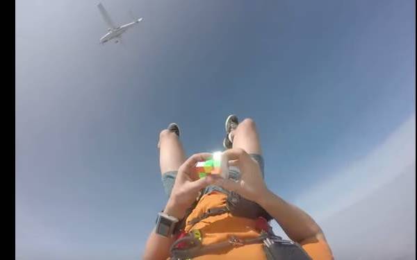 Un video de YouTube muestra cómo un paracaidista puso a prueba su destreza en la solución del cubo y se propuso hacerlo antes de