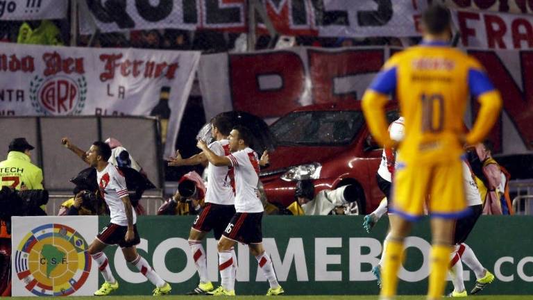 Con los tantos de Lucas Alario, Carlos Sánchez, de penalti, y Ramiro Funes Mori, el conjunto argentino sentenció ante su público en el estadio Monumental una serie que había terminado sin goles la semana pasada en el encuentro de ida disputado en Monterrey.