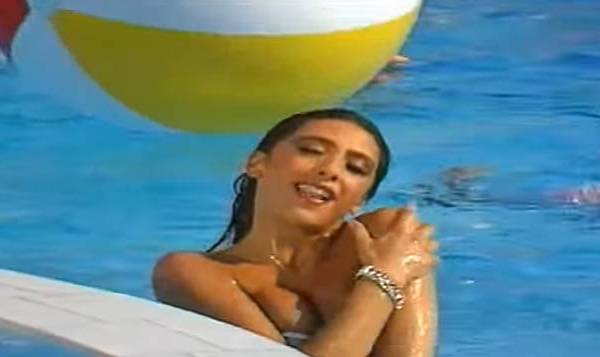 Las escenas de Sabrina en la piscina, vistiendo un ajustado bikini blanco, se transformaron ícono de los jóvenes de la época.