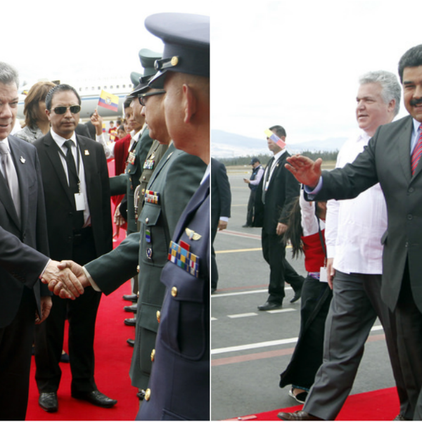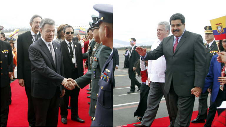 presidente de Colombia, Juan Manuel Santos, y el de Venezuela, Nicolás Maduro, llegaron este lunes 21 de septiembre de 2015 a Quito, a fin de tratar directamente el problema fronterizo que les ha distanciado desde el pasado 19 de agosto.