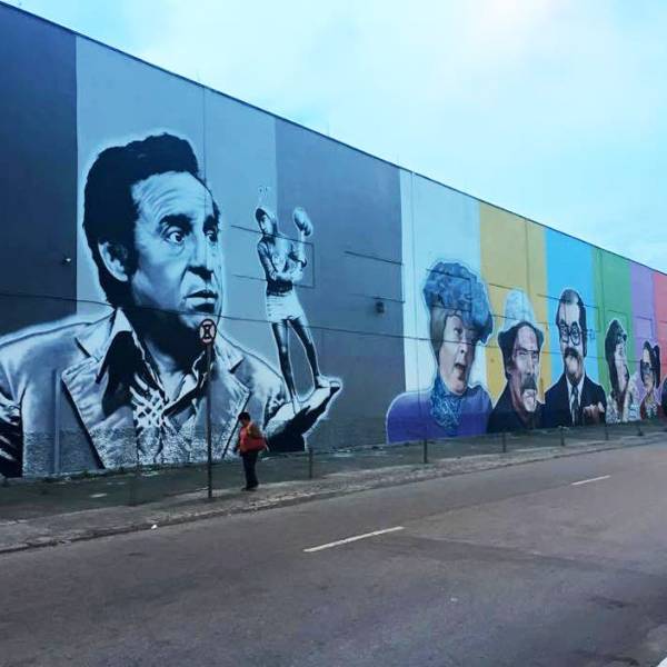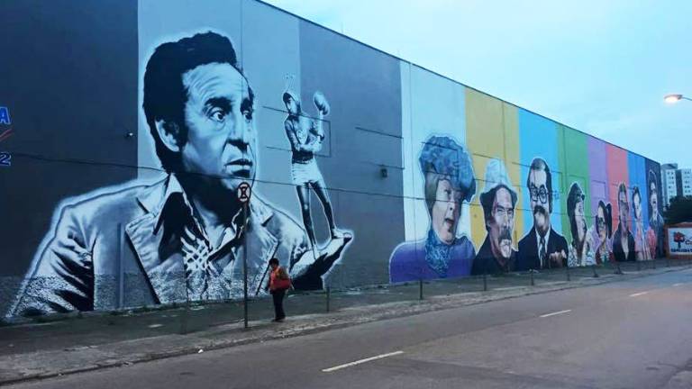 Sao Paulo.- El legado del humorista mexicano Roberto Gómez Bolaños, "Chespirito", que desde hace tres décadas está presente en millones de televisores del gigante latinoamericano, fue inmortalizado en Sao Paulo con un gran mural que homenajea los personajes de la vecindad de "El Chavo del Ocho".