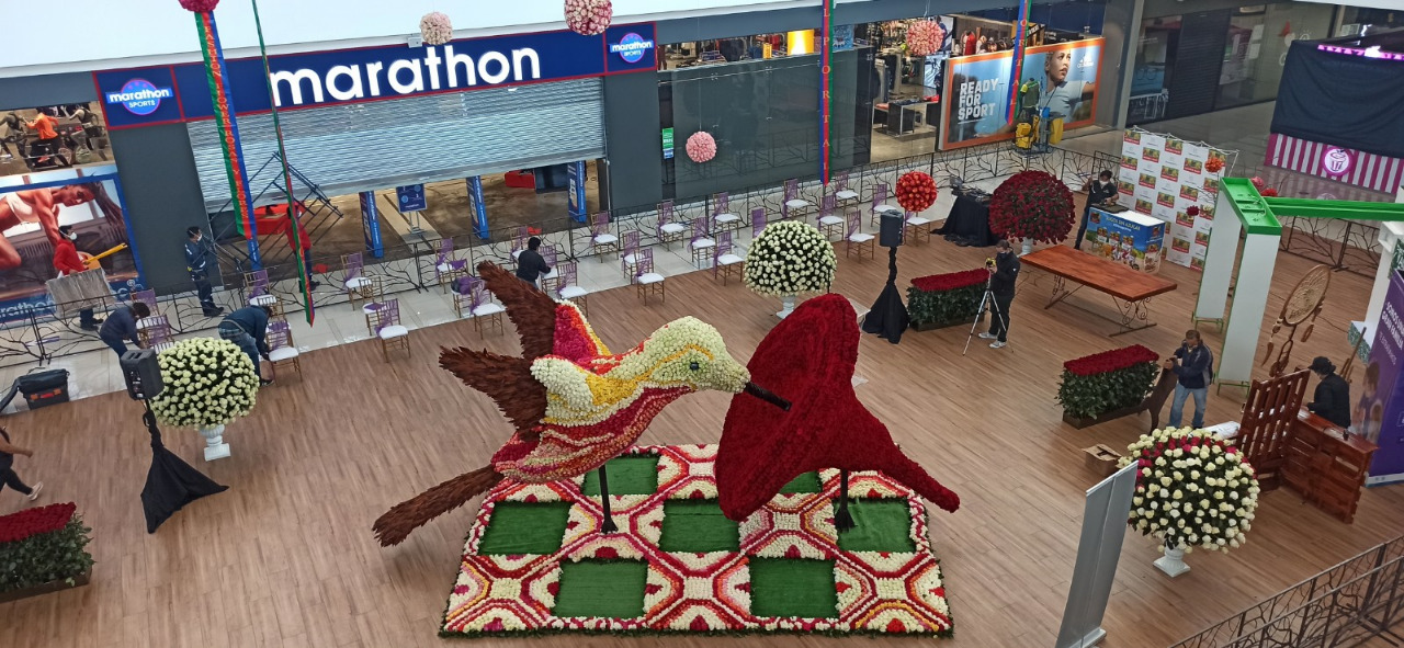 El recorrido de este nuevo tour empieza en el centro comercial Portal Shopping, donde se exhibe un colibrí gigante, formado con los pétalos de los más coloridos.