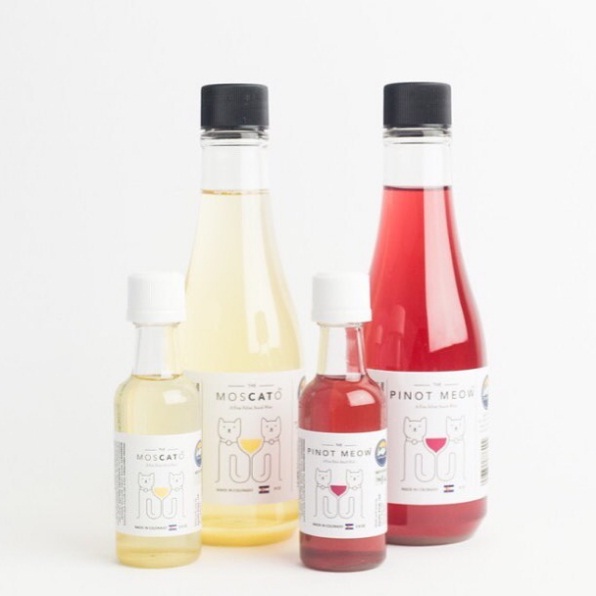 Las variedades denominada "Pinot Meow" y "MosCato" tienen una mezcla de remolacha y hierba gatera, sabores que resultan agradables y saludables para el paladar de los gatos.