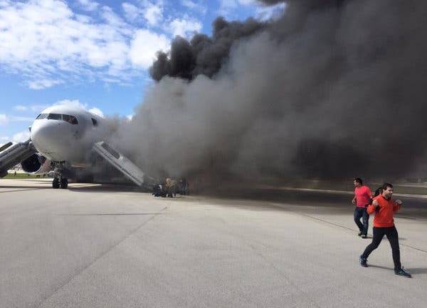 "El motor de un avión se prendió fuego, (el avión) fue evacuado" y