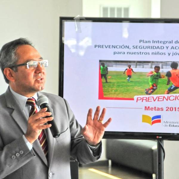 El ministro de esta cartera, Augusto Espinosa, asegura que consiste en instalar cámaras en el exterior de los planteles que tienen más de 1.000 estudiantes, y botones de auxilio en los centros más pequeños.