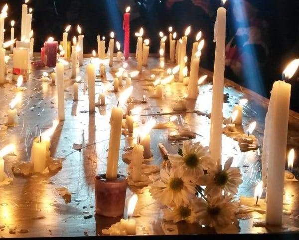Como señal de condolencia y solidaridad para con las víctimas, velas encendidas quedaron al pie de la gran cruz, que acogió también la flores que dejaron ciudadanos compungidos, tristes, solidarios.