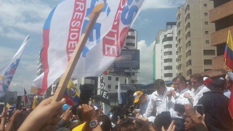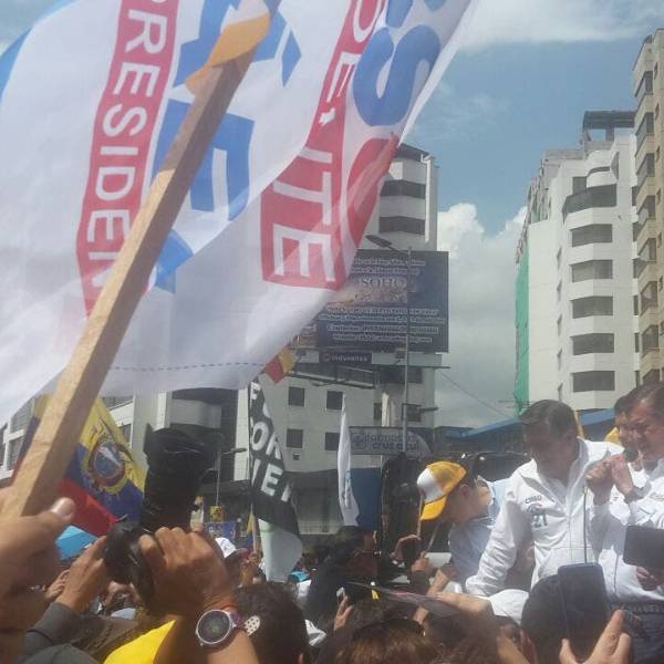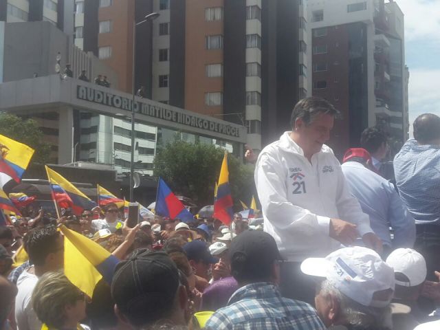 Anoche eran decenas de seguidores de CREO, hoy por la mañana la manifestación sumó adeptos y llegaron también políticos reconocidos de este partido. Según datos preliminares, Guillermo Lasso de CREO alcanzaría el 28,2% y forzaría una segunda vuelta con Lenín Moreno de AP, con 39,11%.