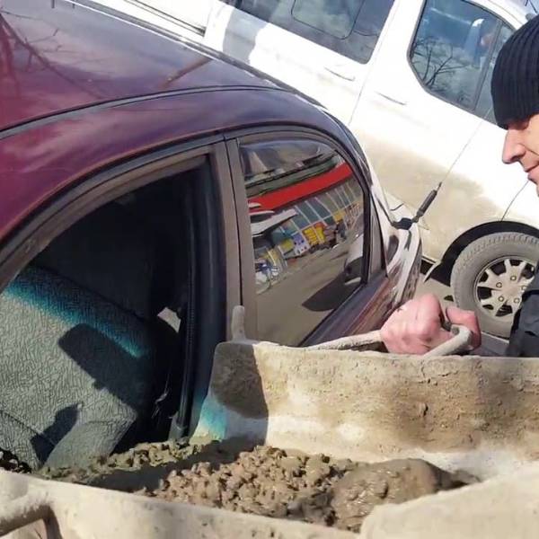 En San Petersburgo, un hombre decidió vengarse de su mujer, quien se cambió el apellido para participar en una promoción de un supermercado. La empresa prometía regalar cerca de $900 a quienes se pongan como apellido 'Vernyy' (nombre de la tienda que significa 'fiel'). El esposo se enteró, consiguió una hormigonera y llenó su auto de cemento.