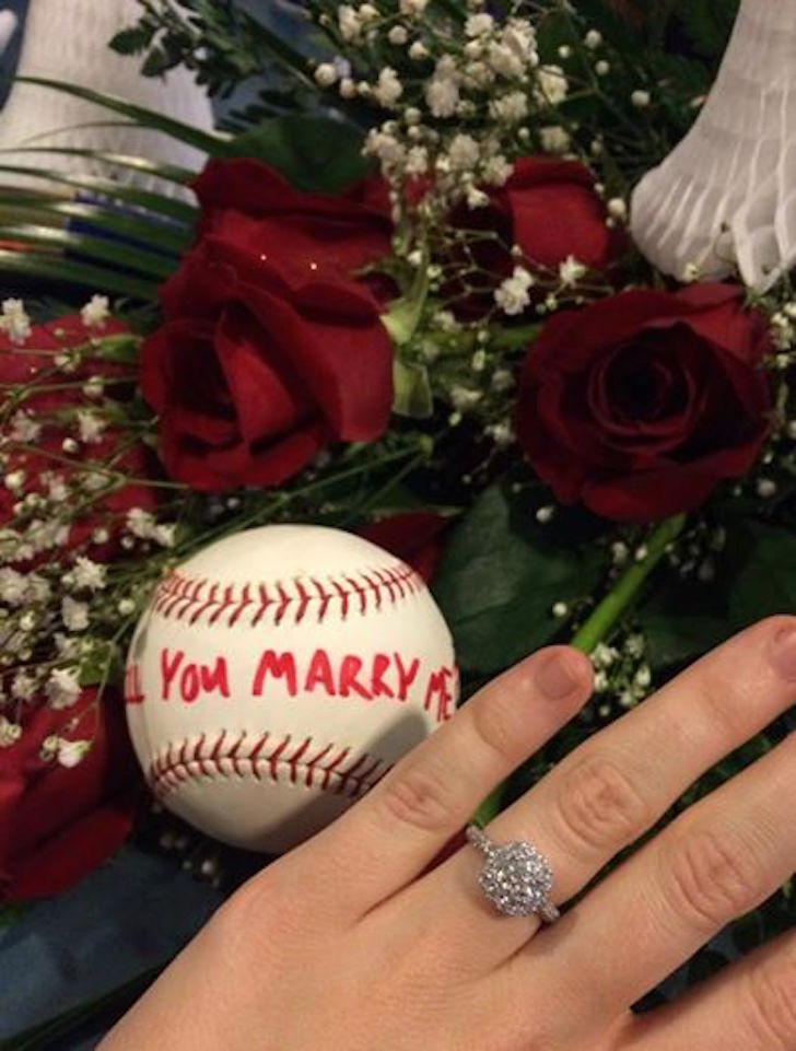 La relación de tres años iba muy bien y el pasado 11 de mayo fueron juntos al partido de baseball de los Tampa Bay Rays. La cita ya era especial porque ella sería quien hiciera el primer lanzamiento del encuentro, pero Cameron tenía algo mucho más importante que hacer.