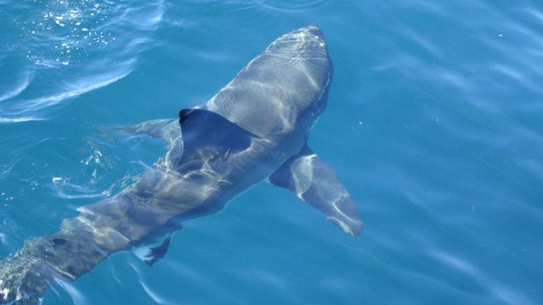 Un biólogo del Departamento del Sector Primario precisó que las marcas en la tabla de sur de Ison indican que se trató de un gran tiburón blanco.