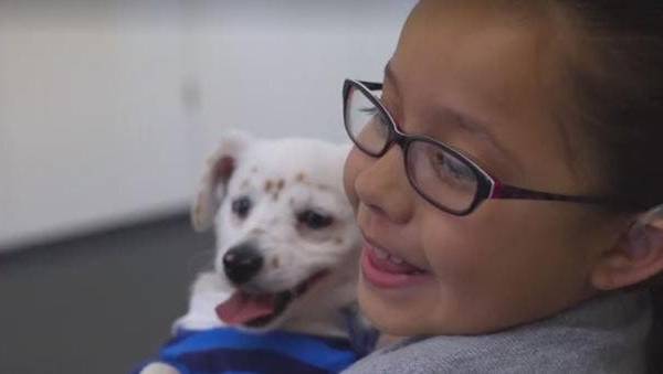 La Sociedad Protectora de Animales de Pasadena y SCPCA en California publicaron un video en su cuenta de Facebook en el que se muestra a ambos jugando mientras ella le enseña el lenguaje de signos al cachorro.