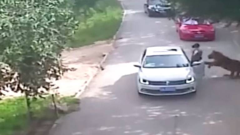 El hecho ocurrió el pasado sábado en el Beijing's Badaling Wildlife World cuando una de las mujeres bajó del vehículo cuando hacía el recorrido por el parque.