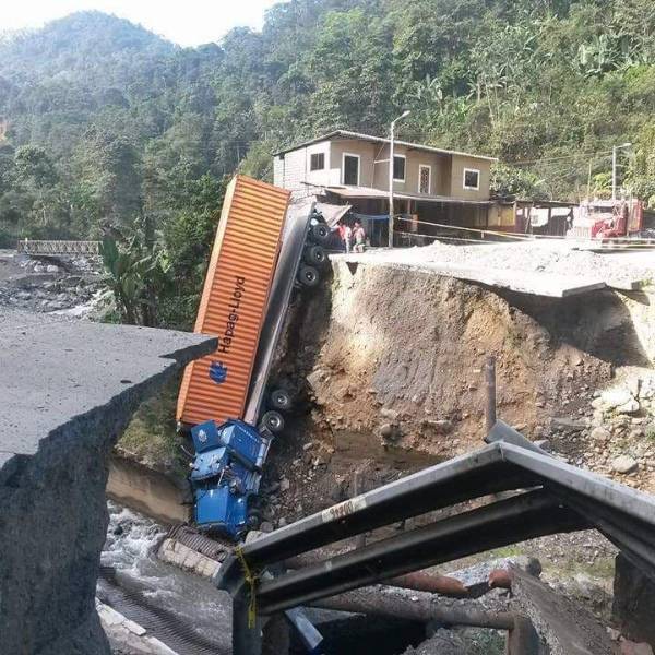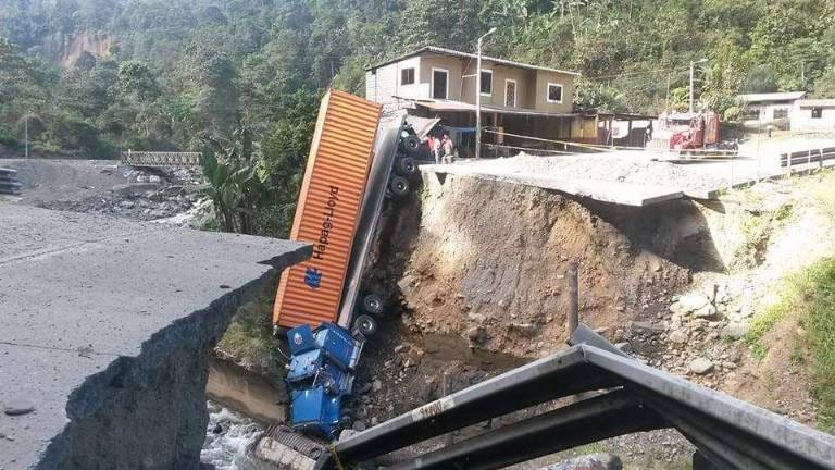 Un nuevo accidente se registró en la vía Guayaquil-Riobamba (Bucay-Pallatanga). El conductor del transporte no se percató que la vía estaba dañada y cayó al vacío.