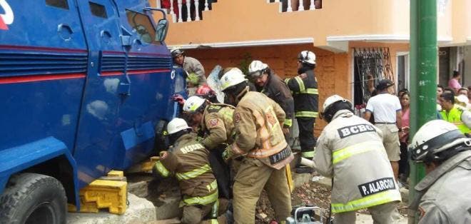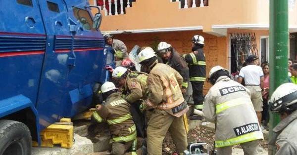 vehículo blindado perdió pista y se fue encima de una vivienda del cerro Santa Ana, centro de Guayaquil, atropellando además a un joven de 20 años, quien falleció.