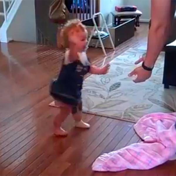 En la grabación se ve a la pequeña probando la extremidad artificial y luego dando algunos pasos por precaución para no perder el equilibrio. Ella cae en el intento, pero -muy lejos de llorar-, sonríe, se levanta y lo intenta nuevamente.
