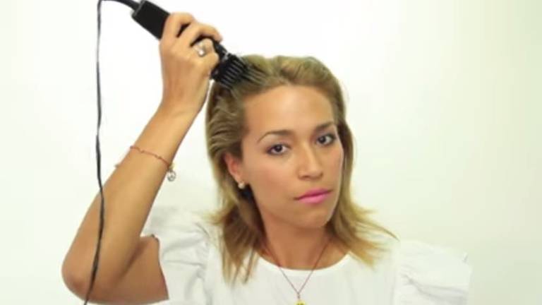 La primera de las venezolanas corta su rubio cabello primero con unas tijeras y después con una máquina por