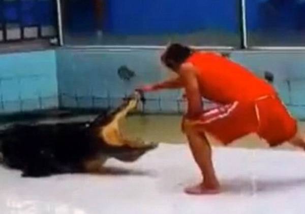En las Red ha aparecido un terrorífico video grabado durante un espectáculo que tuvo lugar en Phuket (Tailanda), en que se puede ver a un cocodrilo a punto de arrancarle el brazo a su entrenador, informan medios locales.