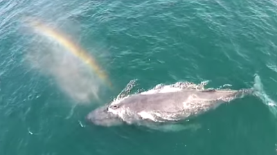 Ballena ‘sopla’ un arco iris en las aguas de New Port