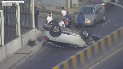 Varios siniestros fueron capturados por cámaras de vigilancia del sistema Ojos de Águila. Uno de ellos ocurrió en la Av. Carlos Julio Arosemena, cerca del ingreso a Miraflores. Un vehículo tipo SUV quedó volteado sobre un carril del extremo como consecuencia.