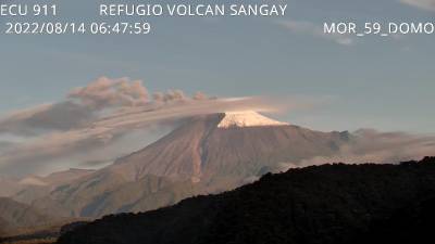 El volcán Sangay generó unas 185 explosiones en las últimas diez horas y formó una nube de ceniza y gases de unos dos kilómetros de altura sobre su cumbre que, por efecto del viento, se dirigió hacia el oeste, con rumbo al océano Pacífico.