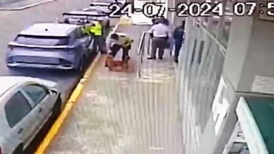 Antes de efectuar la acción, el can estaba caminando por la vereda de forma tranquila, cerca de un par de personas y un guardia de la zona que observaron lo ocurrido sin oponerse.