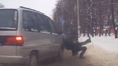 Un video del Departamento de Policía de Bielorrusia muestra a un uniformado ser golpeado por un vehículo cuanto intentaba salvar a un incauto joven.