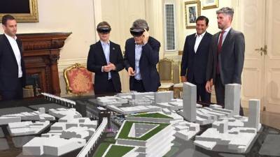 El presidente de Argentina, Mauricio Macri, observó hoy a través de unas gafas y desde la Casa Rosada, sede del Gobierno en Buenos Aires, los avances de una obra pública mediante hologramas de alta definición desarrollados por la multinacional de tecnología Microsoft.