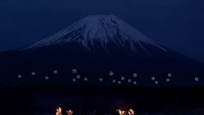 Ballet de drones luminosos en el Monte Fuji