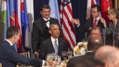 El presidente estadounidense, Barack Obama (d), vota en una reunión de alto nivel del Consejo de Seguridad de Naciones Unidas sobre terrorismo mundial durante la 69 Asamblea General de la ONU.