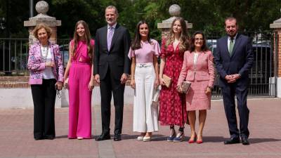 La infanta Sofía recibió este jueves la confirmación en una ceremonia junto a sus compañeros de clase del colegio y arropada por los reyes, su hermana la princesa Leonor, la reina Sofía y sus abuelos maternos. El gran ausente fue el rey emérito Juan Carlos I, que vive actualmente en Abu Dabi.