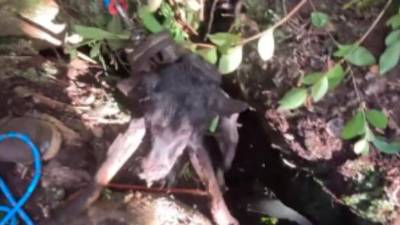 El rescate de Misty, una perrita que cayó 9 metros en una grieta de un volcán en Hawái