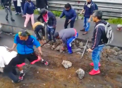 Mujer enfrenta a un manifestante por la libre movilidad: “¿Acaso usted le va a dar trabajo?” Una mujer es empujada por un manifestante, cuando intentaba quitar llantas y piedras que impiden el paso. Nacional 20/06/2022 - 19:17