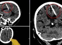 Por medio de una tomografía computarizada, una mujer rusa de 80 años descubrió que ha tenido una aguja de tres centímetros enterrada en su cerebro desde que era bebé.