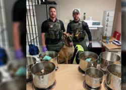 La policía del condado floridano DeSoto (EE.UU.) descubrió con ayuda de uno de sus perros adiestrados casi 8.000 libras (unas 4.000 kilos) de marihuana repartidas en siete ollas a presión de las que se usan para cocinar dentro de un automóvil que fue detenido por exceso de velocidad.