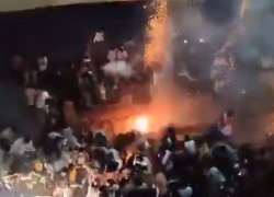 Una cámara captó el momento en el que decenas de dispositivos pirotécnicos fueron activados dentro de una sala de cine, provocando que los espectadores del filme huyeran de forma frenética.
