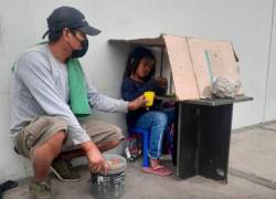 Niña conmueve al estudiar bajo una caja de cartón mientras su padre lava autos Entretenimiento 12/07/2022 - 11:43