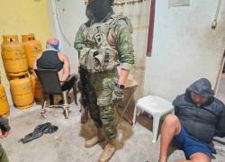 Fuerzas Armadas decomisó armas y detuvo a tres personas de Los Lobos en El Oro "Duro golpe a la organización terrorista Los Lobos en la frontera sur", escribieron las Fuerzas Armadas en su cuenta de la red social X. Nacional 16/03/2024 - 15:45