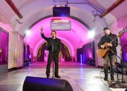 Bono, líder de U2, brindó "concierto por la paz" en una estación del metro de Kiev Internacional 08/05/2022 - 11:11