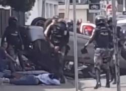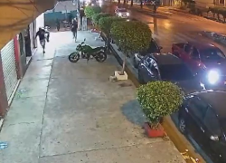 Según se observa en un video grabado por una cámara de seguridad, la víctima se encontraba dentro de un vehículo cuando notó la presencia de hombres en moto.