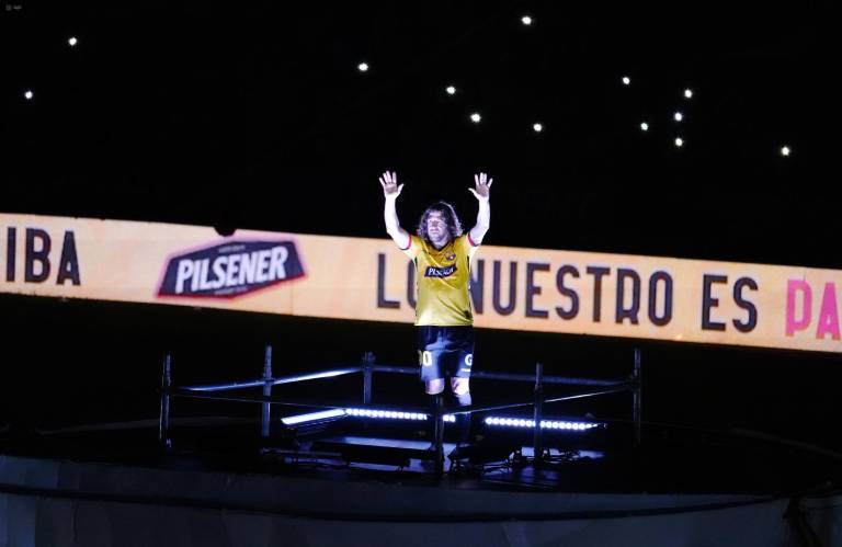 El cuerpo técnico y los jugadores de Barcelona SC desfilan por el Estadio Monumental. La afición coreó los nombres de sus ídolos. El más ovacionado fue Felipe Caicedo, fichaje estrella para la temporada. “Estar en este estadio lleno es una sensación única, cumplo un sueño”, declaró el delantero mundialista.